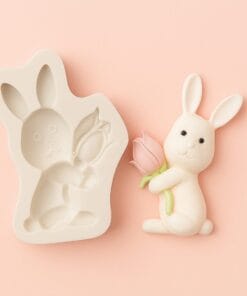 Konijn met Bloem Mould Siliconen mal voor fondant, chocolade of marsepein. Gedetailleerde afwerking en snelle levering.